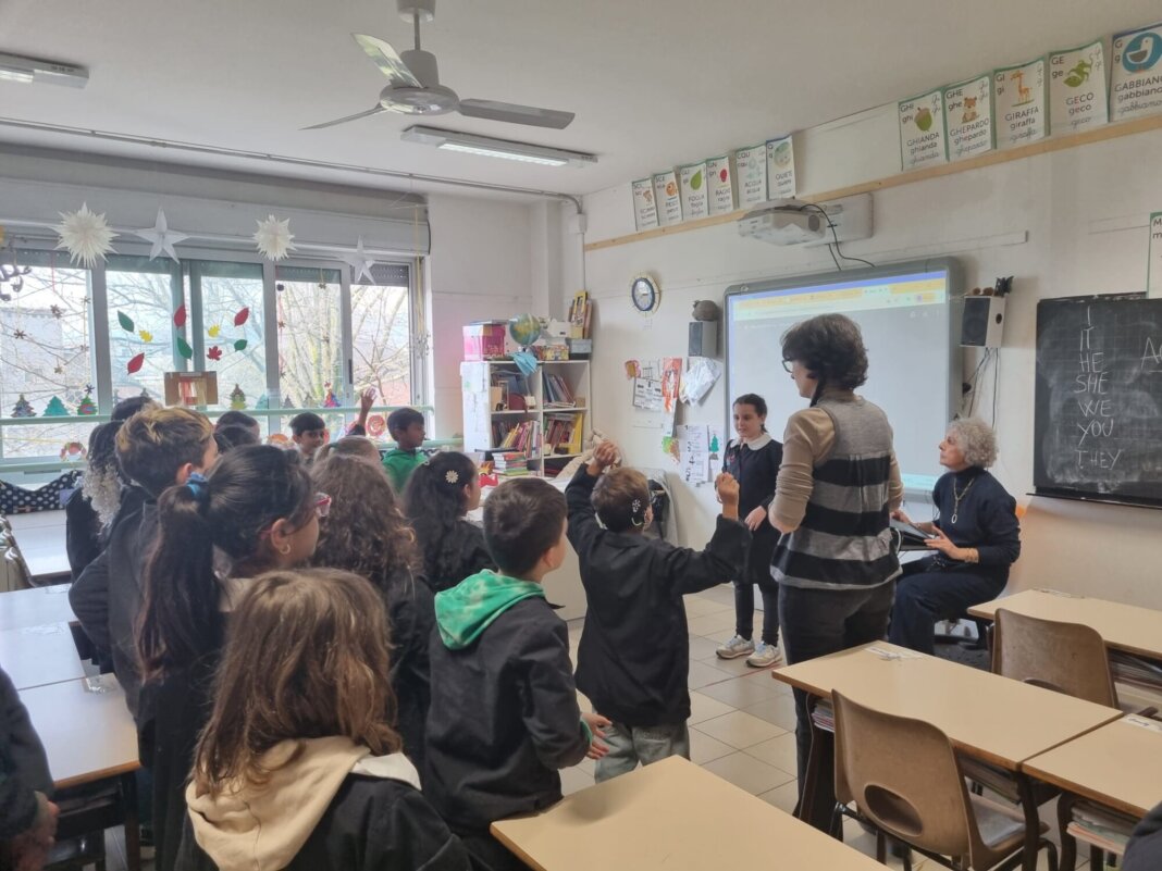 MONTEMURLO – Alla scuola primaria Anna Frank di Oste la percentuale di alunni stranieri è alta, così come l’inclusione scolastica. Merito anche dell’insegnamento della Lis che, oltre a far integrare pienamente un bambino sordo, serve come lingua universale per far dialogare alunni di provenienze diverse, magari da poco in Italia che non parlano bene la nostra lingua. Per raccontare questa esperienza di inclusione, oggi pomeriggio nella 3B è arrivata la giornalista Silvia Ferretti del Tgr – Rai 3 Regionale, che nei prossimi giorni racconterà l’esperienza in un servizio tv.