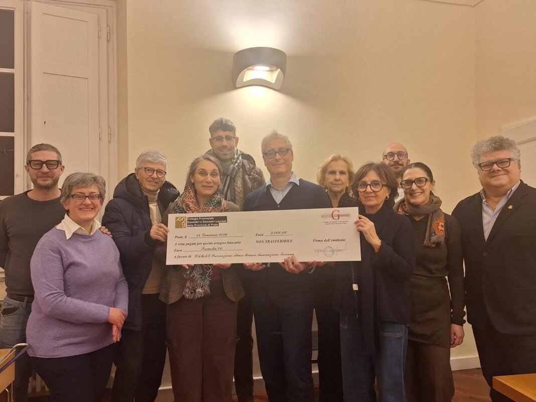 PRATO – Tremila euro per sostenere le attività di Pamat, l’associazione Prevenzione Abuso Minori Associazione Toscana. E’ quanto raccolto dal Collegio dei Geometri di Prato attraverso l’organizzazione di una cena benefica, tenuta lo scorso dicembre a La Tenda di Mezzana.