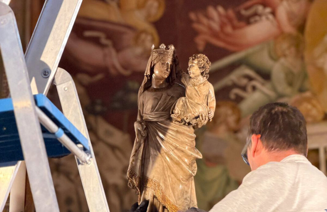 PRATO – Un momento storico per il patrimonio artistico pratese: la Madonna della Cintola, capolavoro scultoreo di Giovanni Pisano custodito nella Cattedrale di Prato, ha lasciato temporaneamente la sua sede per essere sottoposta a un importante intervento di restauro e studio presso i laboratori dell’Opificio delle Pietre Dure di Firenze, il prestigioso istituto del Ministero della Cultura per il restauro e la conservazione di opere d’arte.