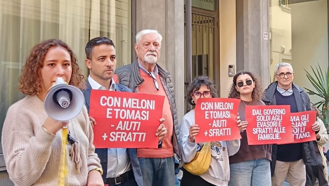 Furfaro dal presidio davanti alla Prefettura denuncia l’ipocrisia del governo: “Questo esecutivo fa una guerra ai più fragili, si taglia sul welfare mentre si elargiscono miliardi in condoni fiscali a chi evade”.