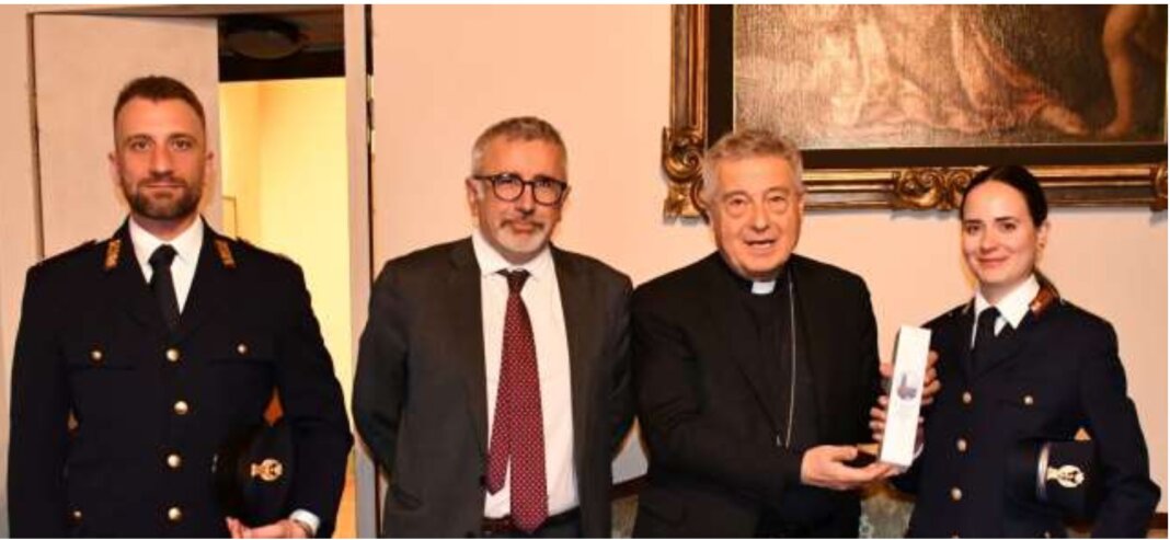 Nel corso di una visita al palazzo vescovile, il vicario del questore di Prato, Carlo Pasquariello, ha consegnato l’ampolla contenente l’olio di Capaci al vescovo di Prato, Monsignor Giovanni Nerbini per la consacrazione crismale.