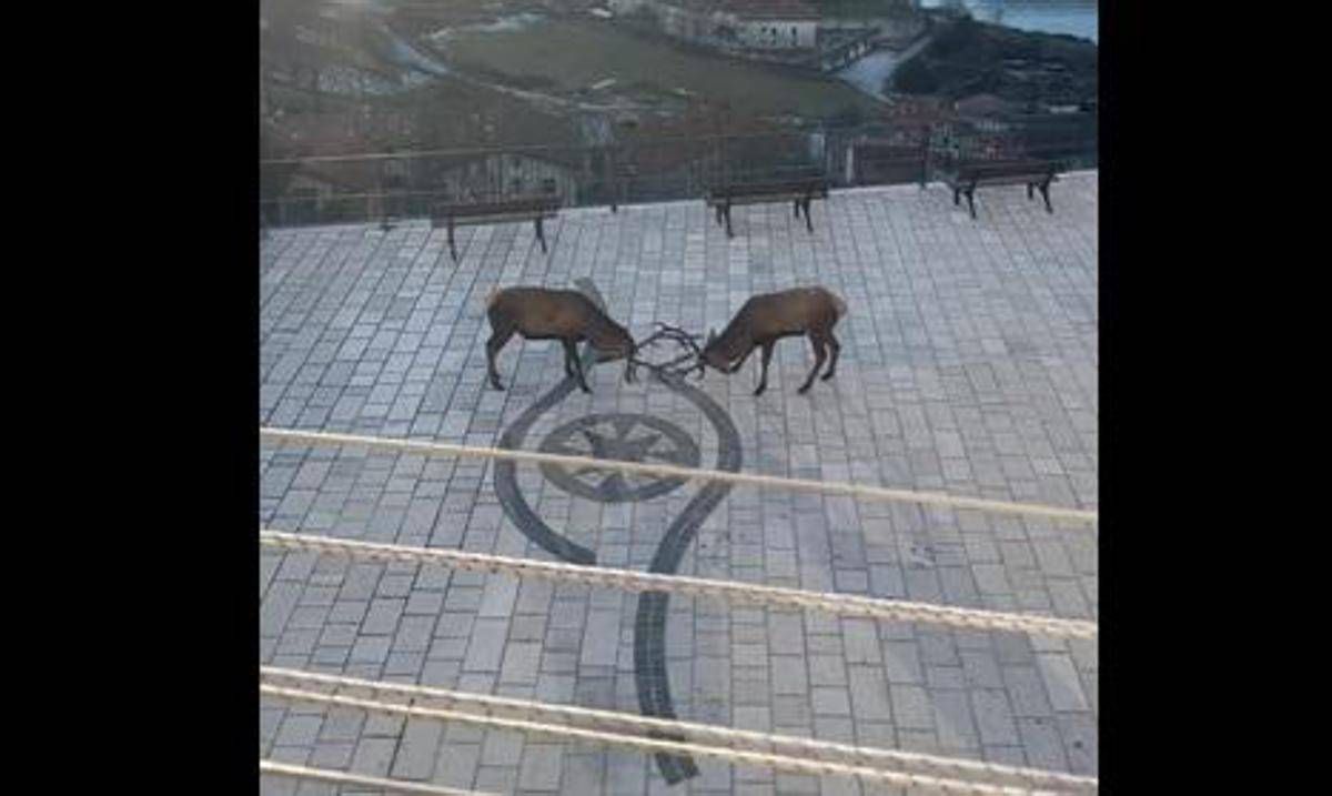 Due cervi maschi si affrontano in pieno centro abitato, in Piazza Mammarino a Barrea, nell’aquilano, nel cuore del Parco nazionale d’Abruzzo, Lazio e Molise. Il video, girato da Susanna Campana, mostra i due animali impegnati in una breve ma intensa sfida a colpi di palco ed è diventato virale sui social nel giro di poche ore. La scena è stata ripresa in una delle zone centrali del paese, che si affaccia sul lago, dove i cervi sono soliti muoversi liberamente, abituati alla presenza dell’uomo. Un fenomeno che da tempo caratterizza Barrea e la vicina Villetta Barrea e che rappresenta una forte attrazione turistica: sono numerosi, soprattutto nei fine settimana, i visitatori che raggiungono i due centri proprio per osservare da vicino gli ungulati.