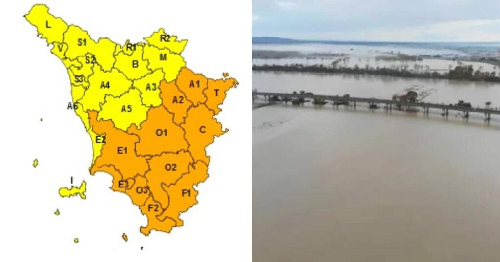 Maltempo, l’allerta meteo diventa arancione in Toscana.
