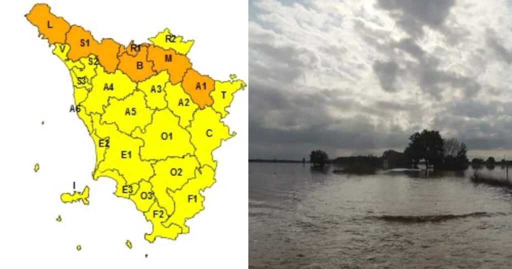 Per rischio idrogeologico del reticolo minore l’allerta arancione scatta dalle ore 17 di giovedì 15 dicembre, fino alle ore 7 di venerdì 16 dicembre, e interessa le aree del Bisenzio e dell’Ombrone pistoiese, la Lunigiana, le valli del Serchio e del Reno, il Mugello e la Val di Sieve e il Casentino con il Valdarno superiore.