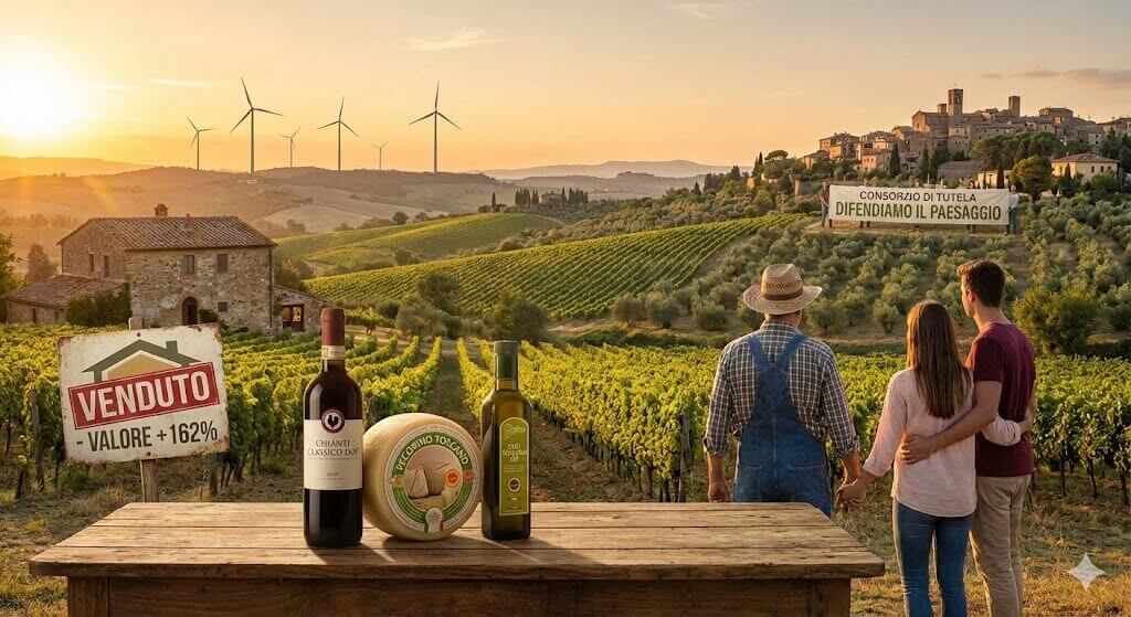 I Consorzi come sentinelle del paesaggio. Questa ricchezza, però, va difesa. Il rapporto evidenzia come il paesaggio produttivo sia oggi minacciato da progetti infrastrutturali invasivi, come i parchi eolici. Qui entrano in gioco i Consorzi di tutela, che si sono trasformati in veri difensori del territorio. Vengono citati espressamente il Consorzio del Morellino di Scansano e il Consorzio dei Vini di Suvereto. Insieme ai Comuni, si sono fatti parte attiva per bloccare speculazioni che rischierebbero di compromettere un paesaggio unico al mondo. La tutela della DOP diventa così tutela dell’ambiente e dell’identità locale.