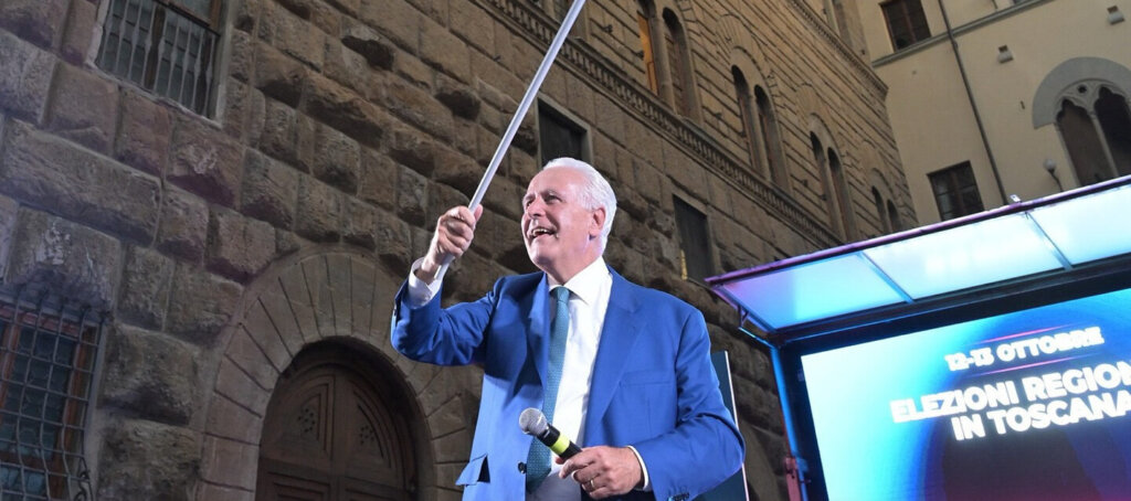 Eugenio Giani, presidente Regione Toscana uscente, e un presunto dono dell’ubiquità, macina ogni giorno tutti i giorni da cinque anni centinaia di chilometri per essere ovunque in tutti i comuni toscani, è stato eletto presidente nel 2020 con oltre il 48% di voti, battendo la candidata presidente centrodestra Susanna Ceccardi, Lega Salvini.