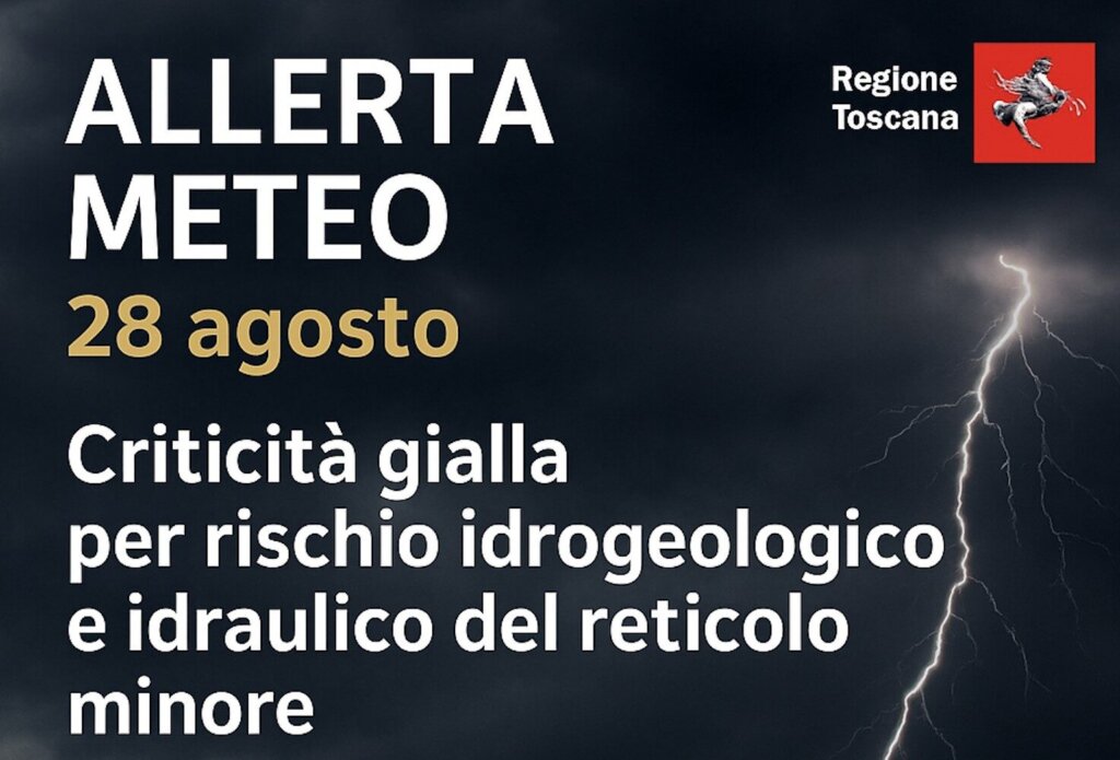La Sala operativa della Protezione civile regionale ha emesso un bollettino di criticità gialla per rischio idrogeologico e idraulico del reticolo minore e temporali forti che sarà in vigore dalle 14 di domani (28 agosto) fino alla mezzanotte e che interesserà tutto il territorio regionale ad esclusione delle aree sud-orientali.