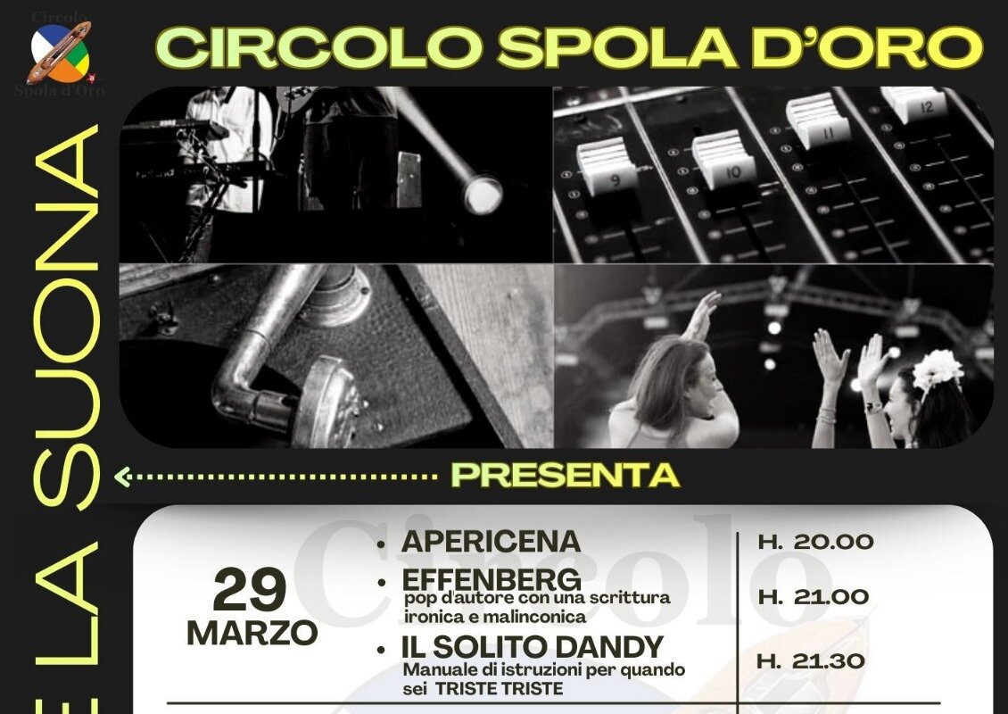 Il primo appuntamento è in programma domenica 29 marzo con una serata che si aprirà alle ore 20 con apericena, seguita alle 21 dal live di Effenberg, cantautore dal linguaggio ironico e malinconico, e alle 21.30 dallo spettacolo de Il Solito Dandy, “Manuale d’istruzioni per quando sei triste triste”, un progetto che unisce musica e racconto in una forma intima e contemporanea.