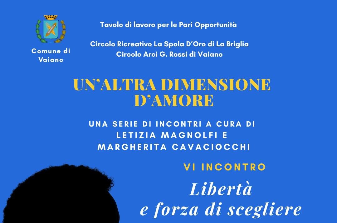VAIANO – Si conclude mercoledì (10 dicembre) il percorso culturale Un’altra dimensione d’amore, una rassegna dedicata alle rappresentazioni femminili nel cinema, ideata e curata da Letizia Magnolfi e Margherita Cavaciocchi e promossa dal Comune di Vaiano – Tavolo di lavoro per le pari opportunità, dal circolo ricreativo La Spola d’Oro di La Briglia e dal circolo Arci G.Rossi di Vaiano.