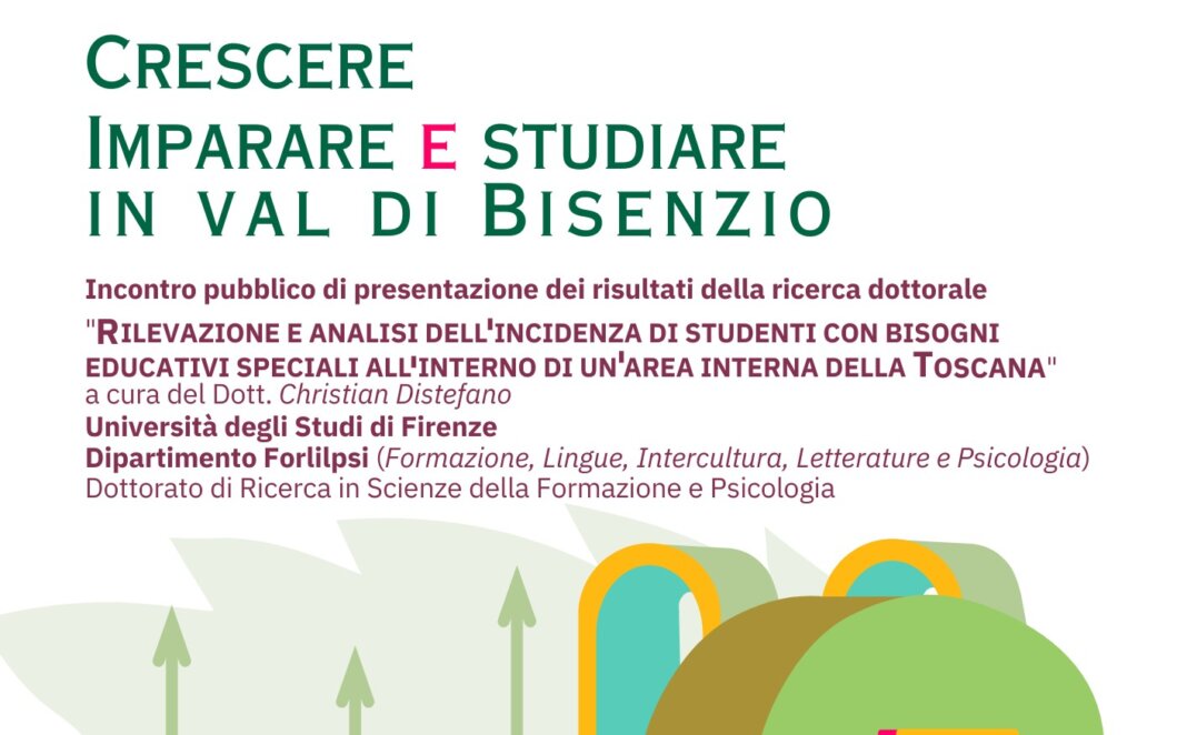 L’appuntamento, dal titolo Crescere, imparare e studiare in Val di Bisenzio, sarà l’occasione per presentare i risultati di una ricerca dottorale condotta da Christian Distefano, dottorando dell’università degli studi di Firenze, che ha analizzato l’incidenza degli studenti con Bisogni educativi speciali (Bes) in un’area interna della Toscana, con un focus specifico sulla Val di Bisenzio.