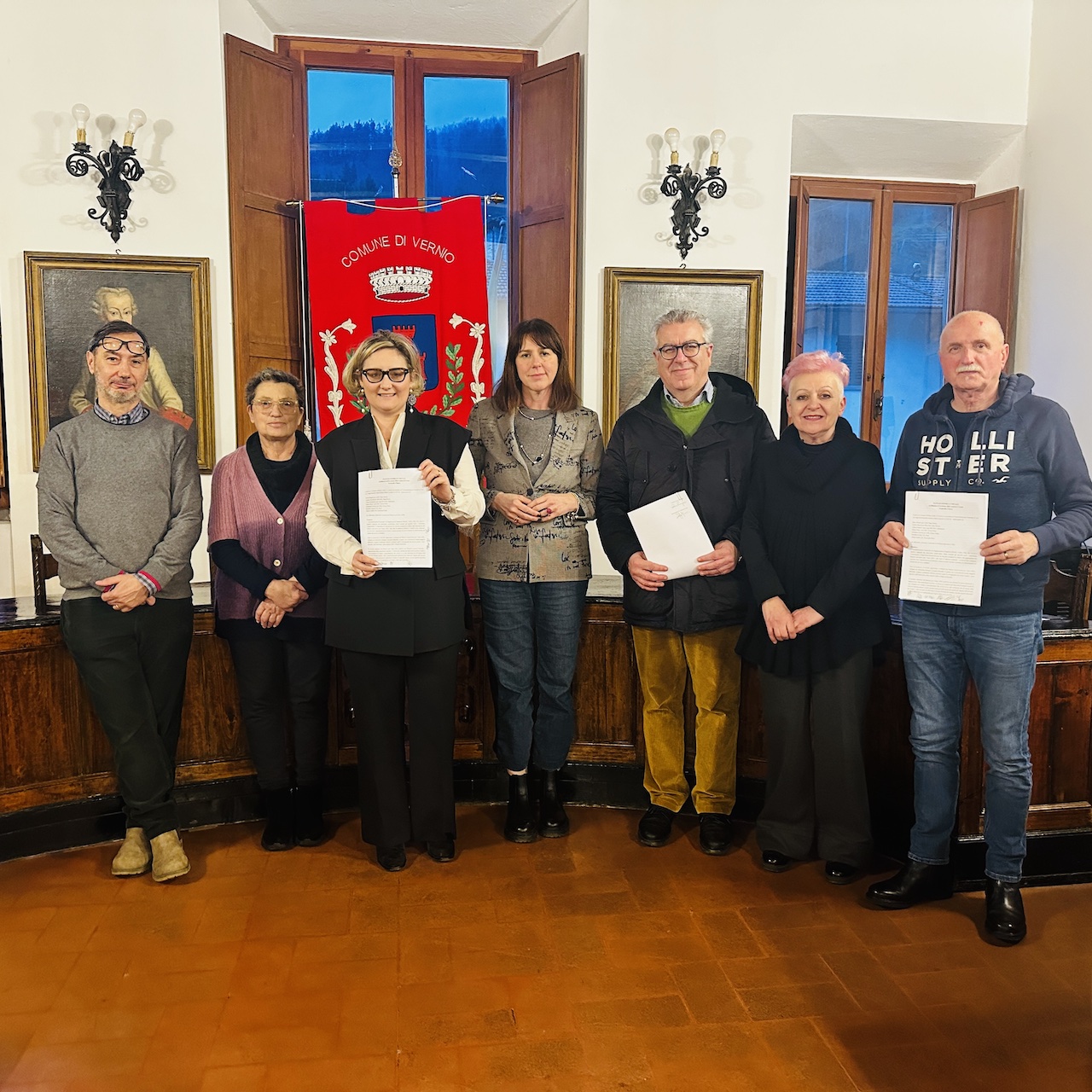 VERNIO- L’amministrazione comunale di Vernio e le sigle sindacali di Cgil, Cisl e Uil hanno firmato a palazzo comunale un protocollo d’intesa e di indirizzo per il bilancio preventivo 2026 del Comune di Vernio. Il documento è stato siglato dalla sindaca di Vernio Maria Lucarini, da Silvia Biagini per CGIL Prato Pistoia, Andrea Brachi per SPI CGIL Prato Pistoia, Vilma Fontanive per Lega SPI CGIL Valbisenzio, Marco Bucci e Elisabetta Nocera per Cisl Firenze Prato, Rodolfo Zanieri Uil Prato e Mauro Fabbri per UIL Pensionati Prato.